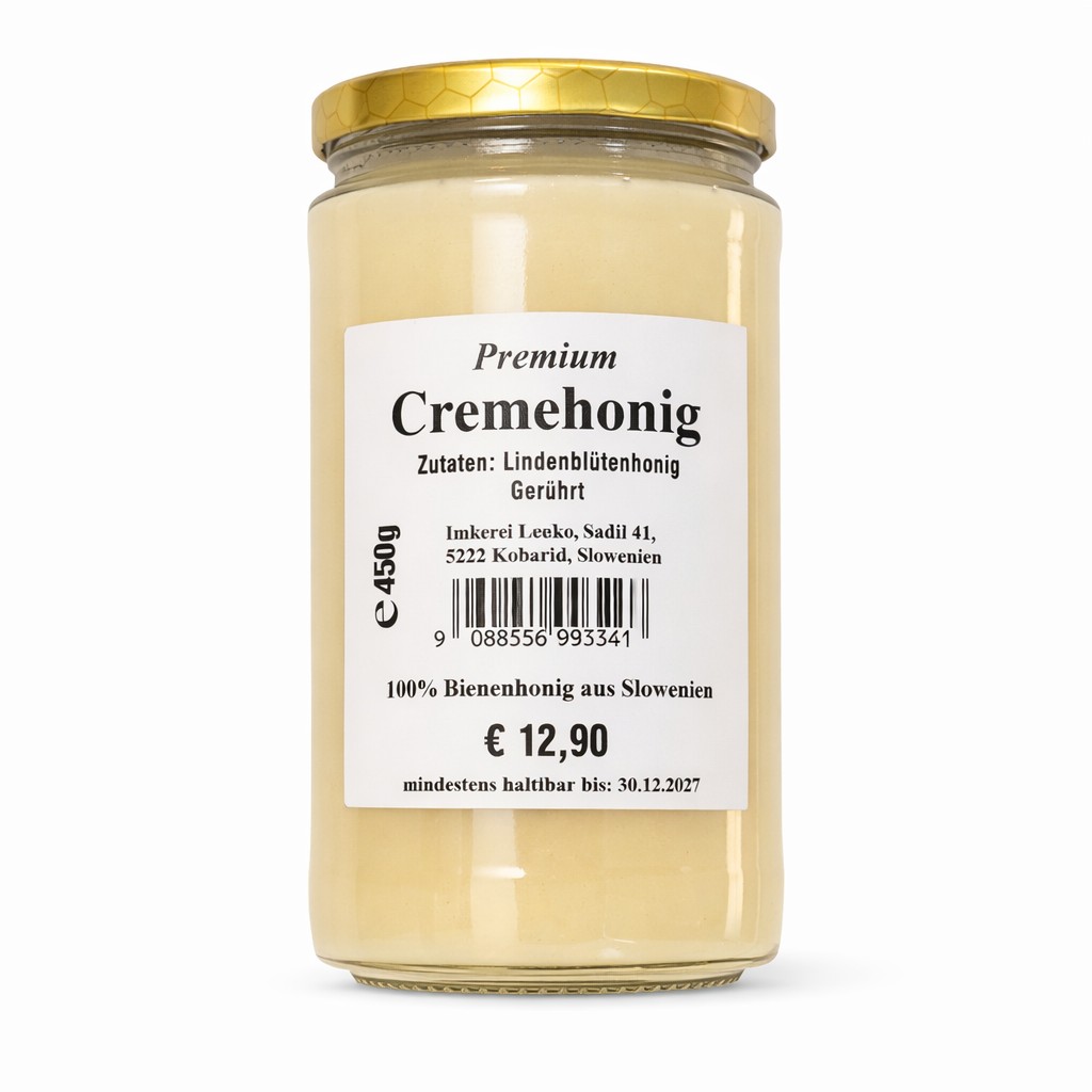 Cremehonig 420g ist ein fein gerührter, naturreiner Bienenhonig aus Lindenblüten und steht für höchste Qualität, ehrliche Herkunft und vollen Geschmack. Dieser Cremehonig 420 g wird in nachhaltiger Imkerei in Slowenien gewonnen und überzeugt durch seine besonders cremige Konsistenz sowie sein mild-blumiges Lindenaroma. Durch das schonende Rührverfahren bleibt der Honig streichfähig, ohne erhitzt oder industriell verarbeitet zu werden.
