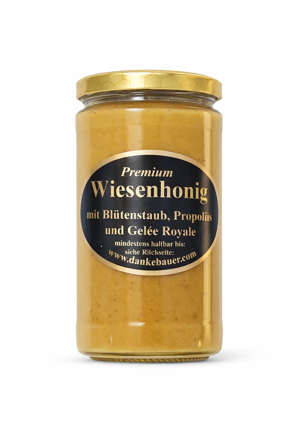 Diese Honigspezialität vereint mehrere natürliche Bienenprodukte in einem Glas. Wiesenhonig bildet die Grundlage, während Blütenstaub, Propolis und Gelée Royale den Charakter des Produkts abrunden. Die Kombination wird traditionell geschätzt und ist besonders bei Kundinnen und Kunden beliebt, die Wert auf ursprüngliche Lebensmittel legen.