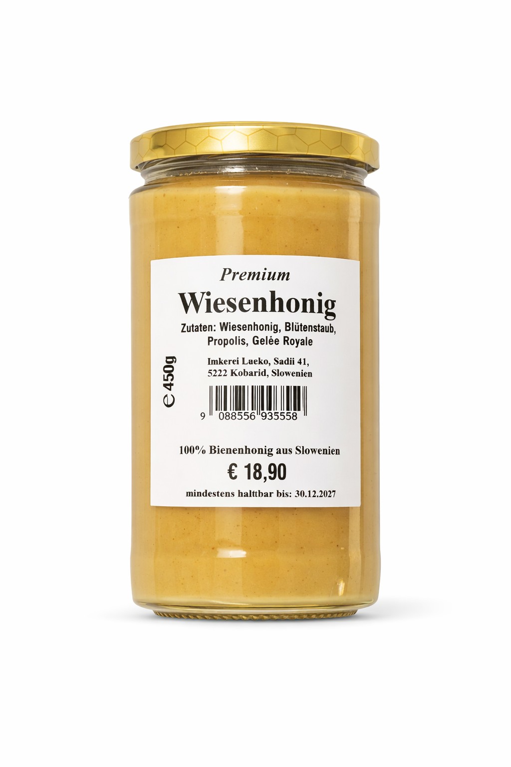 Wiesenhonig mit Gelée Royale ist ein hochwertiger Premium-Bienenhonig aus Slowenien, der für natürlichen Geschmack und sorgfältige Verarbeitung steht. Die Basis dieses Honigs bildet naturreiner Wiesenhonig, der mit Blütenstaub, Propolis und Gelée Royale ergänzt wird. Das Ergebnis ist eine ausgewogene Honigspezialität für bewusste Genießer, die Wert auf Herkunft und Qualität legen.